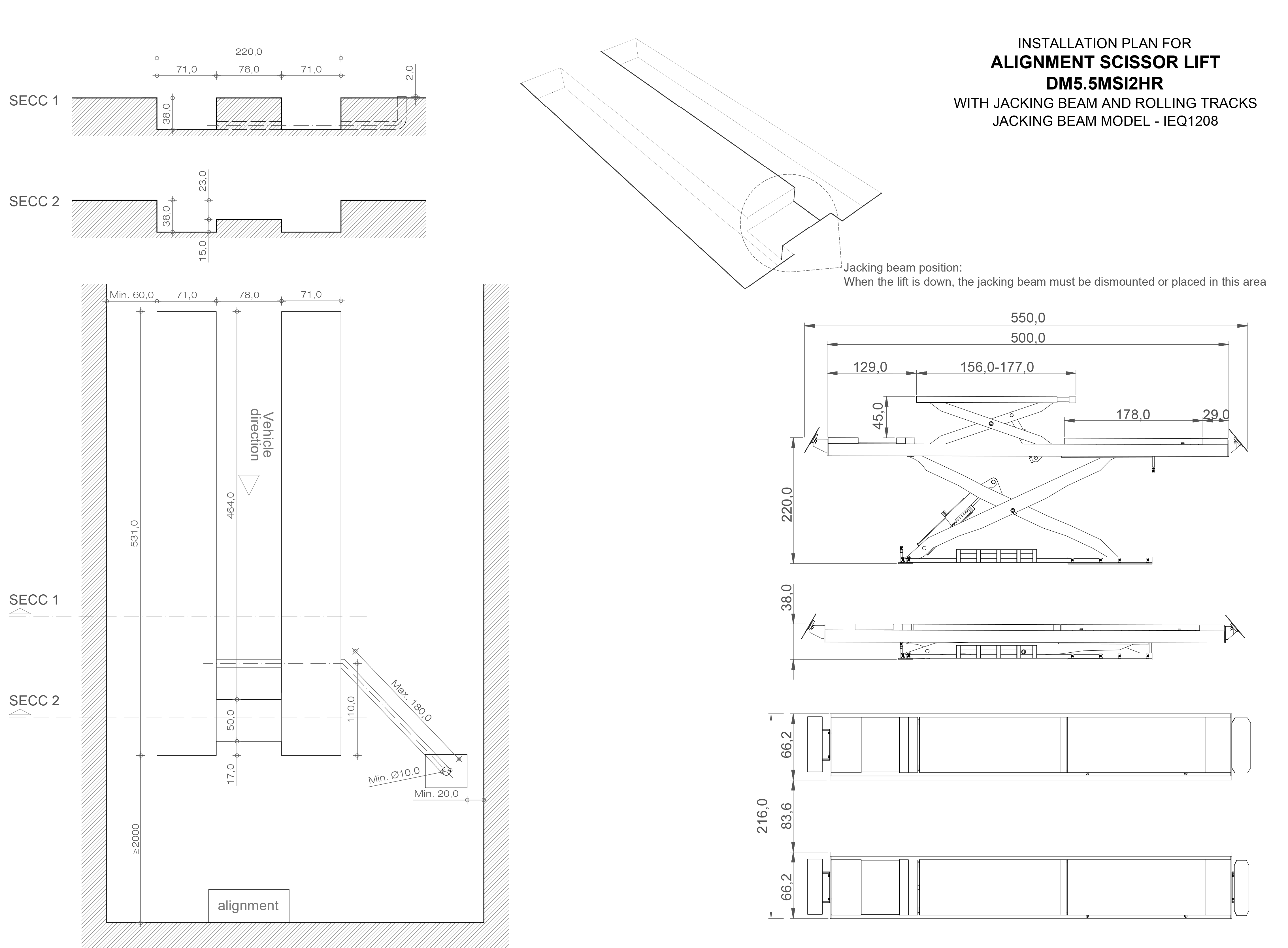 This versatile wheel alignment scissor lift comes complete with an integral secondary scissor lift, wheel alignment rear slip plates and front turn plate recesses making it ideal for general servicing and as a highly accurate geometry lift. This R variant also has rails ready to install a jacking beam.